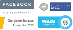 Parceria certificada com Google, Facebook, RD Station, Waze.